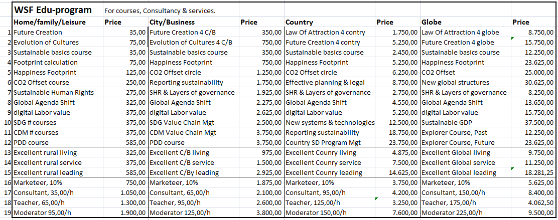 For brochure & schedule email to education@worldsustainabilityfund.nl