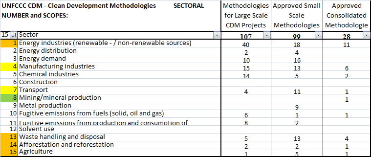 4. TECHNIQUES WSF catagorized the rougly 250 CDM, Clean Development Methodologies per Sector: