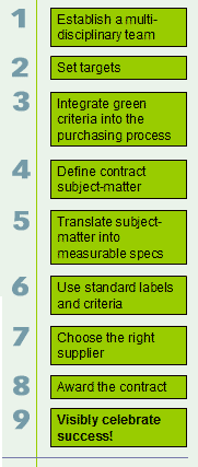 2. BUYING GREEN The easiest way to start Greening is to buy as much as possible sustanaible raw materials, production and office means, transport, labour, training, maitenance, bank services, ...